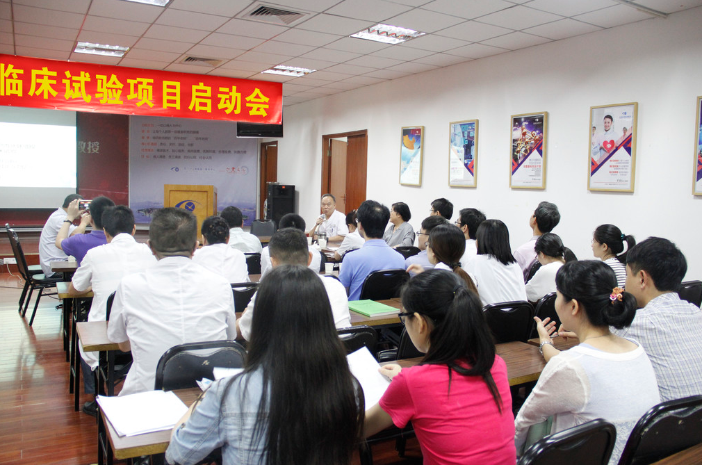 從5月25日我院藥物臨床試驗(yàn)倫理委員會審核通過該項(xiàng)目后,其啟動會便于6月9日在我院門診十七樓會議室順利召開。會議由黎曉新院長主持,吳國基業(yè)務(wù)院長為主要研究者對試驗(yàn)方案進(jìn)行了培訓(xùn)。