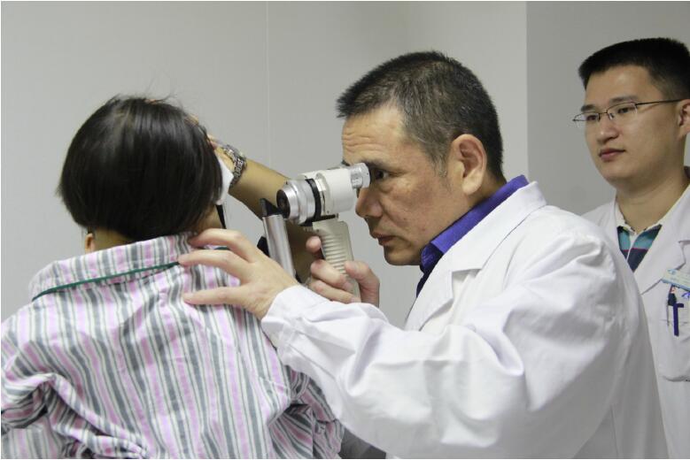 吳護平主任為患者檢查眼睛