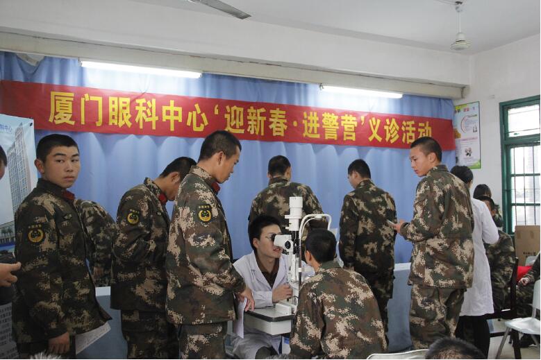 1月29日下午,廈門眼科中心眼表與角膜病專家一行9人冒著冬雨到翔安武警邊防支隊(duì)機(jī)動(dòng)大隊(duì),開展“迎新春 送健康”健康咨詢、義診活動(dòng),并為邊防支隊(duì)武警贈(zèng)送了進(jìn)口眼藥水。廈門眼科中心以實(shí)際行動(dòng)提前為武警邊防支隊(duì)致以新春祝福與問候,并送去了健康。義診現(xiàn)場(chǎng)氣氛十分熱烈,義診從下午三點(diǎn)半一直持續(xù)到下午六點(diǎn),為近百名武警做了眼體檢。