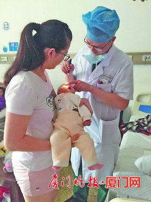 家住翔安的小王當(dāng)媽媽才三個(gè)多月,女兒蕾蕾(化名)前不久剛滿100天。幾天前,小王注意到女兒一只眼睛的下眼角有點(diǎn)紅,擔(dān)心是結(jié)膜炎,于是帶寶寶去兒??茩z查。醫(yī)生檢查發(fā)現(xiàn)蕾蕾的眼睛不太對(duì)勁,瞳孔有點(diǎn)白,懷疑她患有先天性白內(nèi)障,并建議小王帶寶寶到廈門眼科中心確診。