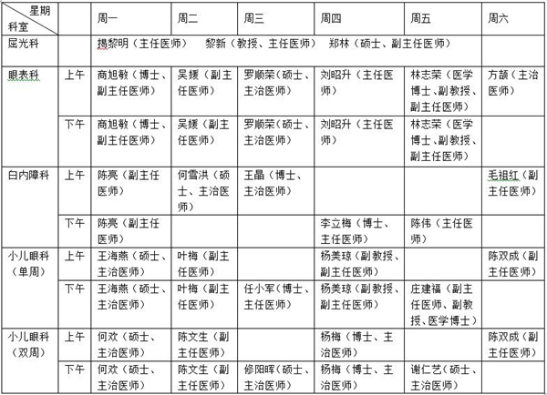 廈門大學(xué)附屬廈門眼科中心多點(diǎn)執(zhí)業(yè)醫(yī)師排班表