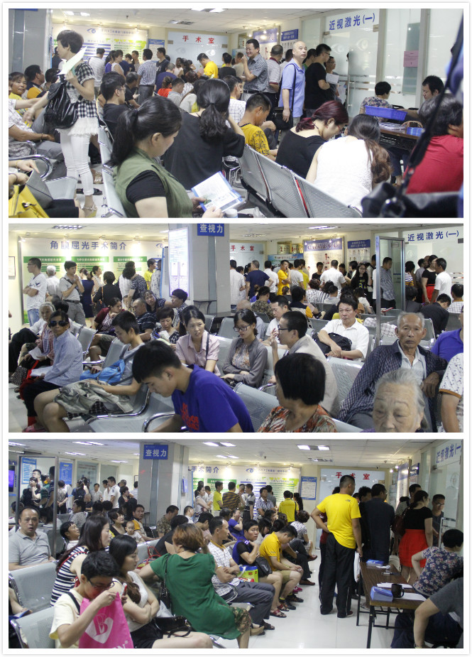 廈門眼科中心四樓視光科迎來(lái)高峰期 門診大廳人山人海