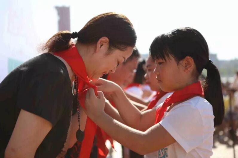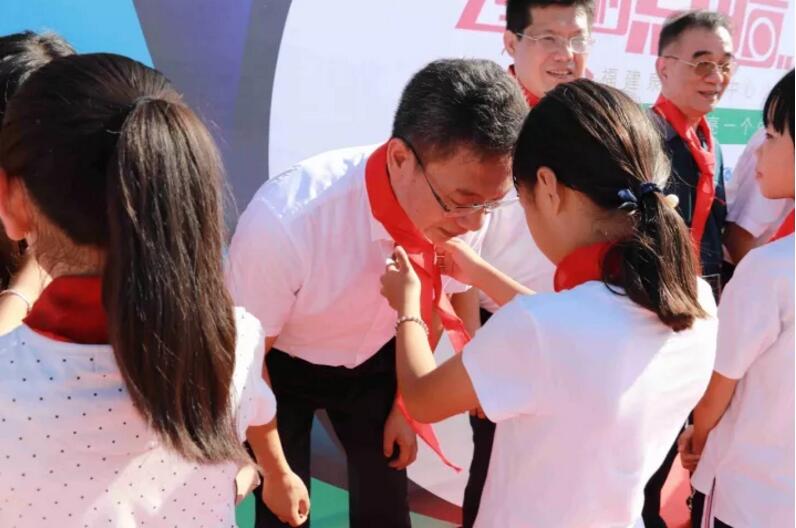 ▲學(xué)生代表為廈門眼科中心李曉峰院長(zhǎng)系紅領(lǐng)巾
