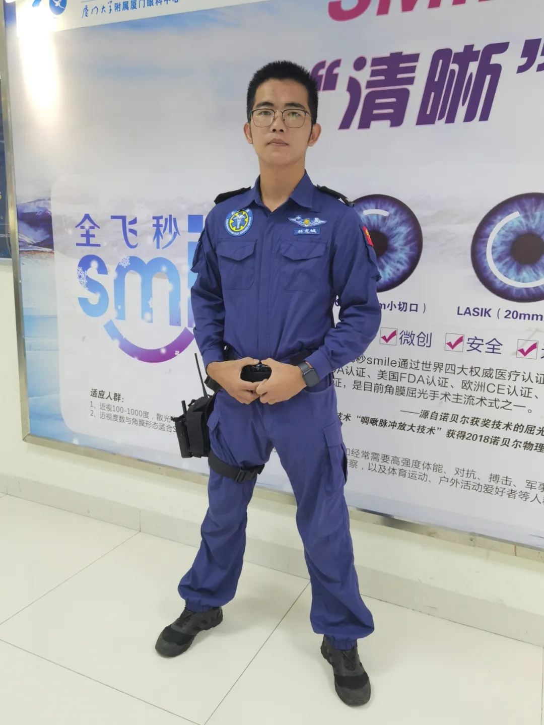 “在江西水災救援時遇到雨天,一邊做事一邊時不時就得擦拭眼鏡上面的雨水和霧氣,才能保證視線不被遮蓋;疫情時眼鏡疊戴護目鏡,不僅眼眶勒得生疼,兩眼也常是霧氣;日常訓練跑動時眼鏡也常會下滑,夜間代駕時也影響視線,真的是既麻煩又危險。”說起近視帶來的煩惱,林龍城深有感觸。對于屈光手術,他早有耳聞,但因為還要負擔家庭的生計花銷,無奈之下只能選擇暫時擱置。