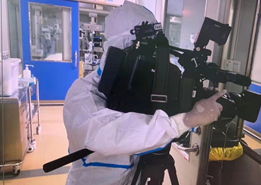 ( 圖為廈門電視臺攝影記者鄒晨鷺在定點醫(yī)院拍攝 供圖:官宇 )