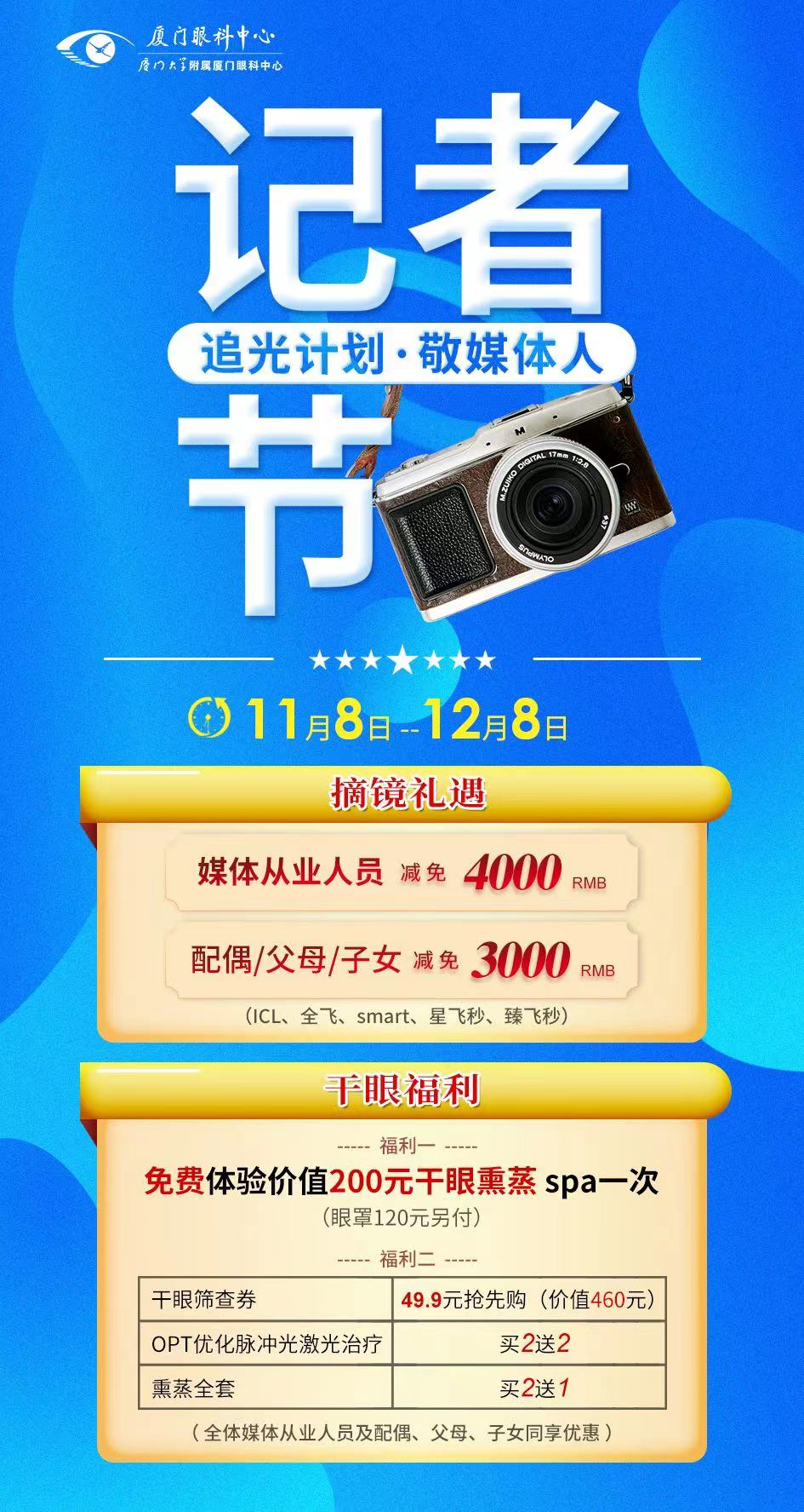 在記者節(jié)這個特殊的日子,廈門眼科中心為媒體人眼健康保駕護(hù)航!為你們帶來清晰和睛彩的視界!