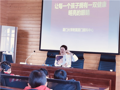然而,在2022年新年開(kāi)工第二天(1月5日),該院門(mén)診、手術(shù)室、病房并未發(fā)現(xiàn)潘美華教授忙碌的身影。她去哪兒了?原來(lái),為貫徹落實(shí)教育部等15部門(mén)聯(lián)合印發(fā)的《兒童青少年近視防控光明行動(dòng)工作方案(2021-2025年)》要求,多方位、科學(xué)、精準(zhǔn)、長(zhǎng)效地做好廈門(mén)市兒童青少年近視綜合防控,協(xié)助學(xué)校建立近視防控體系,潘美華親自領(lǐng)銜帶隊(duì),深入同安區(qū)蓮花中心小學(xué)上陵小學(xué)教學(xué)點(diǎn)和白交祠小學(xué)教學(xué)點(diǎn),為鄉(xiāng)村孩子進(jìn)行視力篩查、科普宣教、贈(zèng)送護(hù)眼大禮包等公益活動(dòng)。