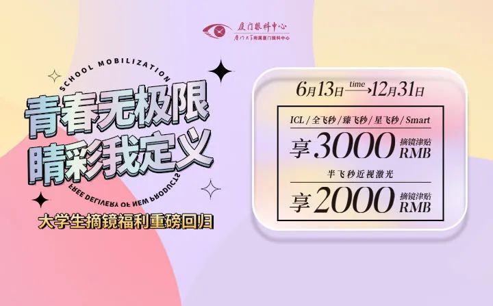 為了幫助更多近視朋友擺脫眼鏡, 廈門眼科中心近期開展了諸多近視手術(shù)活動,快來看看有沒有適合你的那一種 。