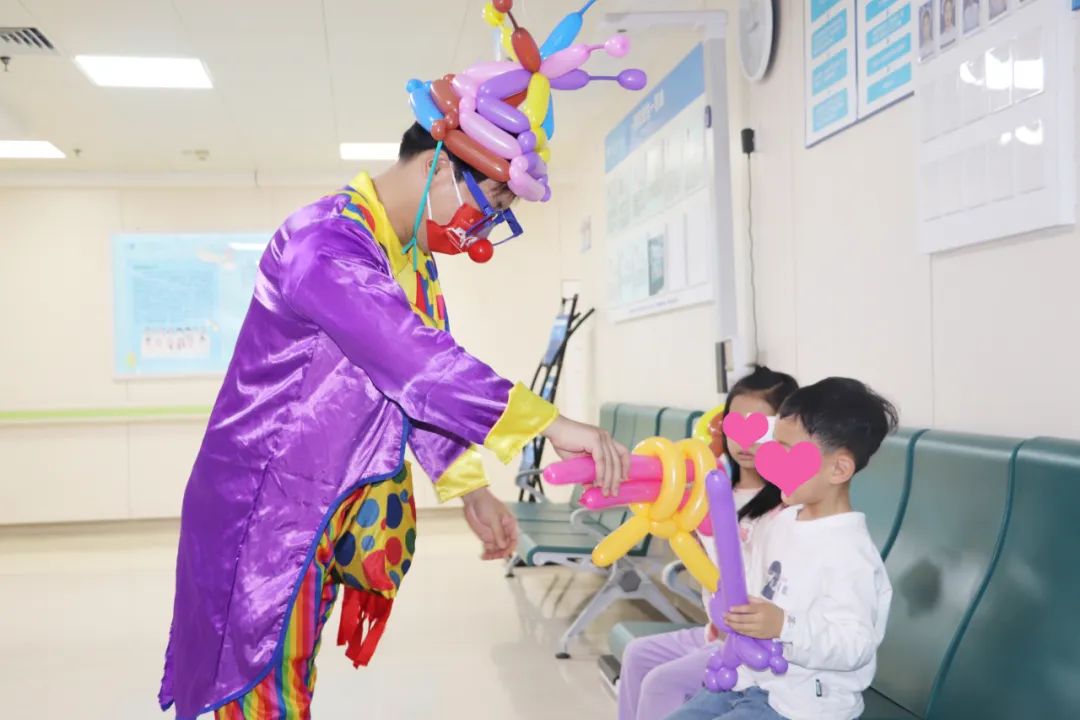 在規(guī)范有序的診療工作外,身著小丑服飾的氣球達人吸引了眾多來院小朋友的目光。