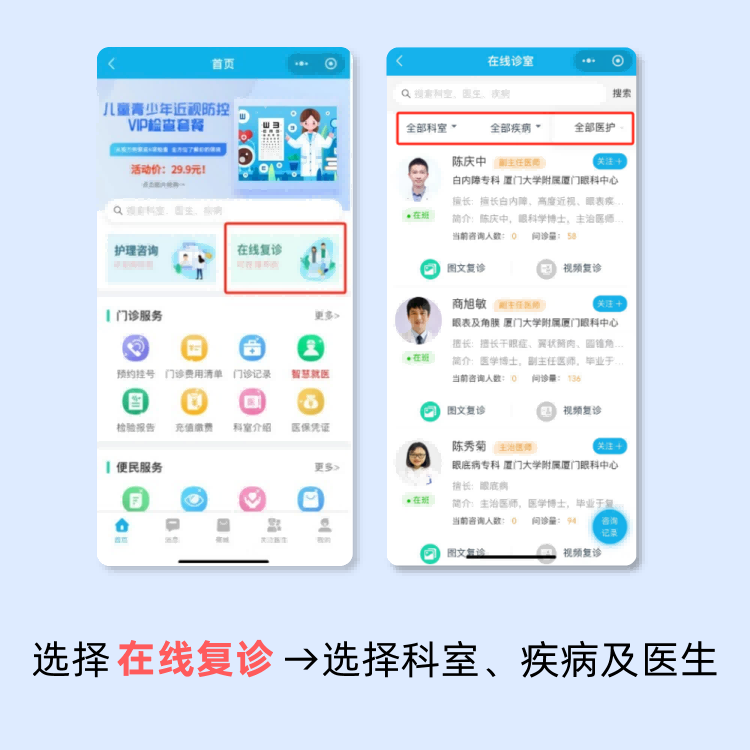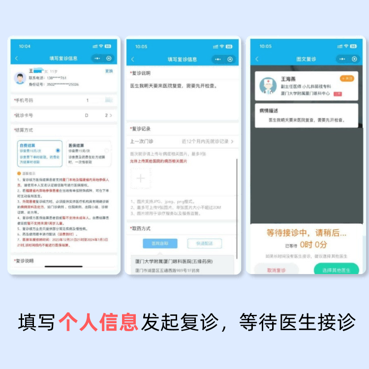 為方便市民群眾就醫(yī)就診,滿足人民群眾多層次多樣化的眼健康需求,6月1日起,廈門眼科中心還將開展為期一個月的“互聯(lián)網(wǎng)醫(yī)院復診免費活動”,患者可通過互聯(lián)網(wǎng)醫(yī)院實現(xiàn)在線復診咨詢、線上開立檢查檢驗項目及預約等服務,減少院內排隊時間,提升就診體驗。