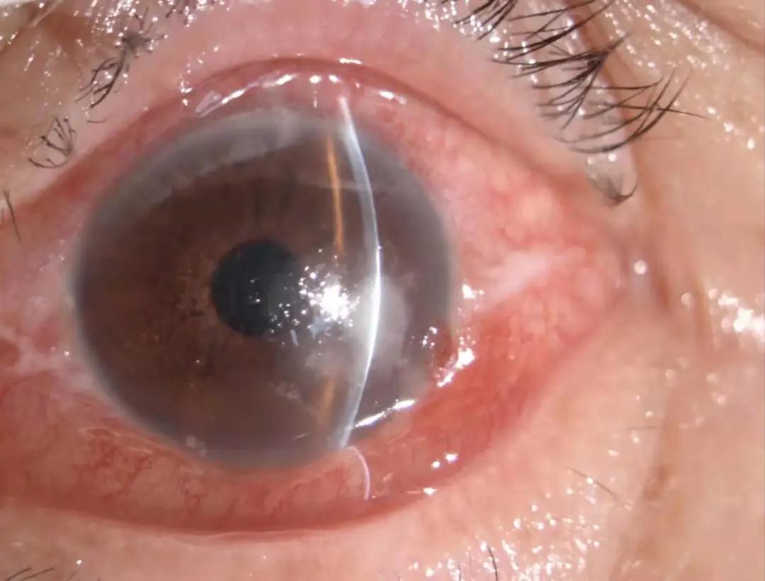 董諾主任聽了林伯的講訴后,立即為他做了詳盡的檢查,檢查結(jié)果發(fā)現(xiàn),林伯的左眼角膜有灰白色浸潤,深度已經(jīng)達(dá)到角膜的一半,角膜表面上皮缺損,基質(zhì)水腫,還有少量白色分泌物附著。