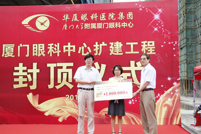 廈門眼科中心的封頂儀式在輕松的氣氛中開(kāi)始,儀式簡(jiǎn)單卻也頗具意義,主辦方將原本用于儀式的預(yù)算節(jié)約下來(lái),并在現(xiàn)場(chǎng)捐贈(zèng)給廈門市光明基金會(huì)。“這是廈門眼科中心也是華廈眼科醫(yī)院集團(tuán)延續(xù)公益慈善傳統(tǒng)的實(shí)際行動(dòng)。為了響應(yīng)國(guó)家規(guī)定,我們?cè)诨I辦封頂儀式時(shí)堅(jiān)決反對(duì)鋪張,并將原本預(yù)算聯(lián)合其他活動(dòng)預(yù)算的節(jié)余部分共計(jì)100萬(wàn)元捐入光明基金,用于貧困眼疾患者的手術(shù)費(fèi)用補(bǔ)助??梢哉f(shuō),封頂儀式的舉辦標(biāo)志著我們公益事業(yè)的再邁步。” 華廈眼科醫(yī)院集團(tuán)業(yè)務(wù)院長(zhǎng)侯家敏在采訪中對(duì)記者說(shuō)。