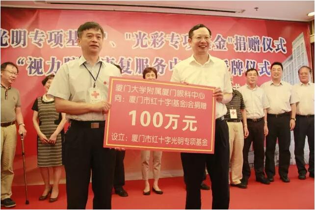 今年7月,廈門眼科中心向廈門市紅十字會(基金會)和廈門市光彩事業(yè)促進(jìn)會共捐贈200萬元,成立光明專項(xiàng)基金,用于貧困眼疾患者的救助工作。同時各科室和醫(yī)院員工也會主動為貧困患者減免費(fèi)用和捐款,為徘徊在光明與黑暗邊緣的貧困眼疾患者創(chuàng)造光明的希望。