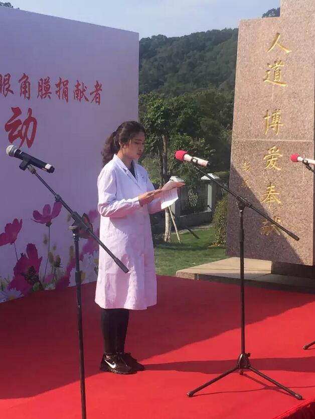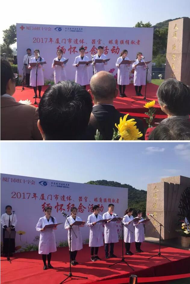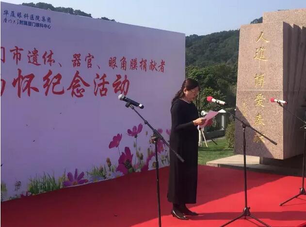 廈門大學附屬廈門眼科中心是福建省眼角膜捐獻指定的接收機構。廈門大學附屬廈門眼科中心黨委書記陳逸恬在緬懷儀式上致辭,表達對生命的理性思考,對捐獻者偉大人格的崇敬之情。同時希望“人道、博愛、奉獻”的紅十字精神越來越被廣大愛心市民所接受和推崇,也希望更多的角膜盲患者能重獲光明,開啟新的生活。