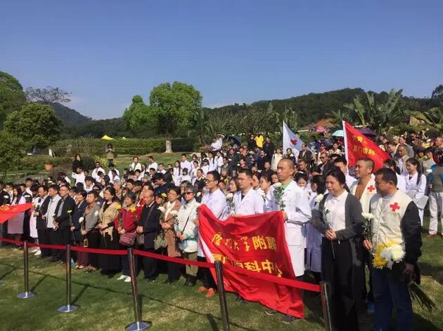 4月1日上午,廈門市紅十字會聯合廈門大學附屬廈門眼科中心在海滄文圃山陵園組織的2017年廈門市遺體與器官(組織)捐獻者緬懷紀念活動順利舉行。捐獻者家屬、捐獻志愿者代表,廈門市紅十字會黨組書記、常務副會長蘇蘇,廈門市紅十字會副會長兼秘書長俞娟,廈門市衛(wèi)計委醫(yī)政醫(yī)管處處長陳糧,廈門大學附屬廈門眼科中心黨委書記陳逸恬,以及廈門海滄文圃山陵園開發(fā)有限公司、廈門大學醫(yī)學院、廈門醫(yī)學院、廈門大學附屬廈門眼科中心以及各區(qū)紅十字會代表共300余人參加了活動。