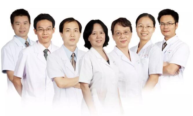 資料圖:潘美華主任(中)與科室醫(yī)生術(shù)后關(guān)愛患兒