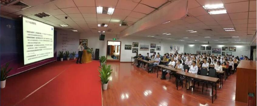 2018年8月30日,廈門(mén)眼科中心成功舉辦《OCTA臨床應(yīng)用經(jīng)驗(yàn)分享會(huì)》,吳國(guó)基院長(zhǎng)主持,蔡錦紅院長(zhǎng)、李明翰主任、眼底病和眼外傷學(xué)科全體醫(yī)護(hù)人員、特檢科全體人員、青光眼和小兒斜弱視學(xué)科臨床醫(yī)生等70余人參加。華廈集團(tuán)資產(chǎn)負(fù)責(zé)人陳鴻萍邀請(qǐng)的蔡司高級(jí)臨床應(yīng)用講師劉春經(jīng)理,為大家?guī)?lái)一場(chǎng)高專(zhuān)業(yè)水準(zhǔn)的精彩課程。廈門(mén)眼科資產(chǎn)負(fù)責(zé)人陳澤峰、林檳帶領(lǐng)部門(mén)全體成員,組織協(xié)調(diào)完成各項(xiàng)會(huì)議籌備工作。