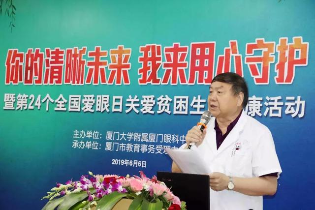 國際眼科科學院院士、亞太斜視與小兒眼科學會副主席、中國醫(yī)師協(xié)會眼科醫(yī)師分會前任會長、中華醫(yī)學會眼科學分會前任主任委員、廈門市名醫(yī)工作室專家、華廈眼科醫(yī)院集團專家委員會主席趙堪興教授,廈門大學附屬廈門眼科中心業(yè)務副院長潘美華教授,廈門市教育事務受理中心主任蔣思彬,衛(wèi)生保健科和資助科負責同志,及來自廈門市6所中小學的20名貧困學生、家長、老師等共同出席了本次活動。