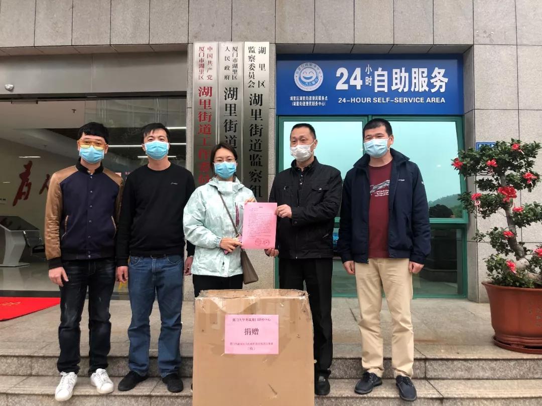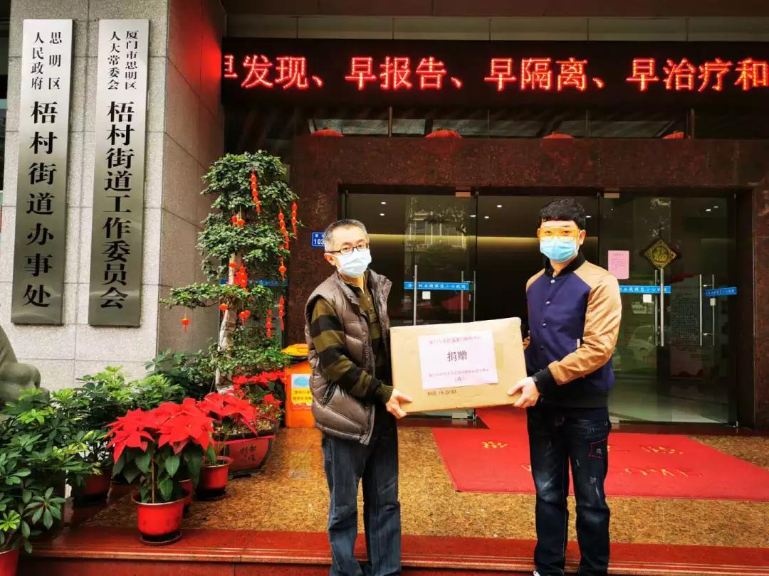 “主任您好,你們辛苦了。這是我們廈門大學(xué)附屬廈門眼科中心捐贈的護目鏡,請您代表貴街道接收。相信我們會戰(zhàn)勝疫情,迎來美好的春天!”