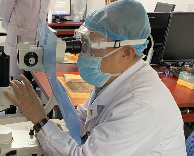 自疫情發(fā)生以來,擁有50多年黨齡的老黨員、勞模吳國基教授作為疫情防控應(yīng)急組領(lǐng)導(dǎo),一直在醫(yī)院防控一線帶領(lǐng)醫(yī)護(hù)人員開展防控工作,一直堅(jiān)守在眼底病??崎T診一線為患者眼睛里的“底片”保駕護(hù)航,彰顯黨員擔(dān)當(dāng)。疫情期間,眼科手術(shù)困難加大,嚴(yán)格的防控和精密的手術(shù)齊頭并進(jìn)。贏得時(shí)間,為患者拯救視力,守護(hù)光明是吳國基教授和每一位“廈眼人”的初心與使命。