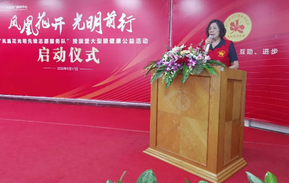 廈門市衛(wèi)生健康委員會機(jī)關(guān)黨委專職副書記、直屬黨委副書記王萍為廈門眼科中心“鳳凰花光明先鋒志愿服務(wù)隊”授旗,并宣布廈門眼科中心鳳凰花光明先鋒志愿服務(wù)隊正式成立。