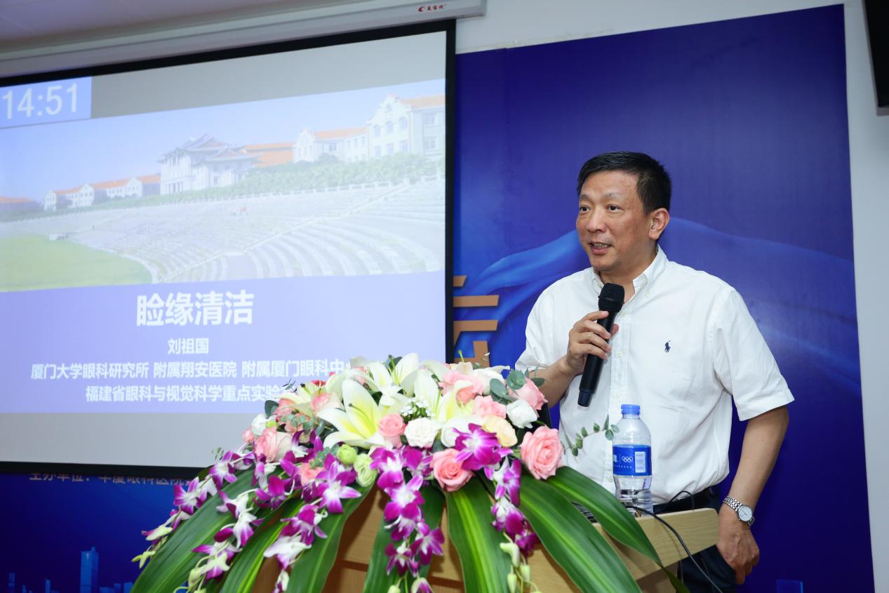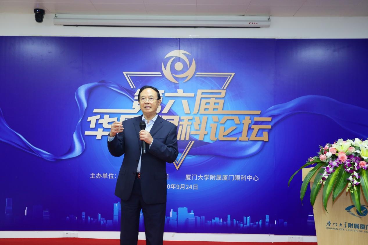 ▲國際眼科科學(xué)院院士、廈門大學(xué)附屬廈門眼科中心總院長黎曉新教授致辭
