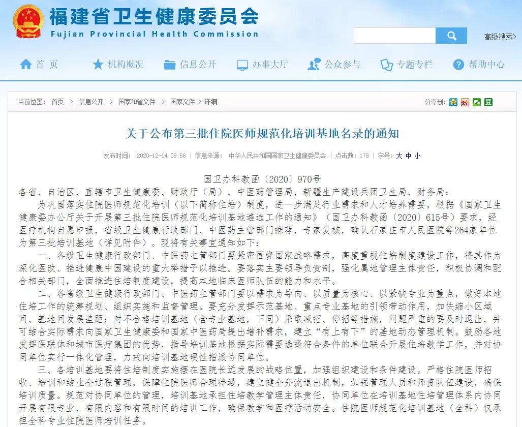 近日,根據國家衛(wèi)生健康委員會辦公廳、財政部辦公廳、國家中醫(yī)藥管理局辦公室聯(lián)合發(fā)布的《關于公布第三批住院醫(yī)師規(guī)范化培訓基地名錄的通知》(國衛(wèi)辦科教函[2020]970號)文件,確認廈門大學附屬廈門眼科中心成為第三批國家級住院醫(yī)師規(guī)范化培訓基地。