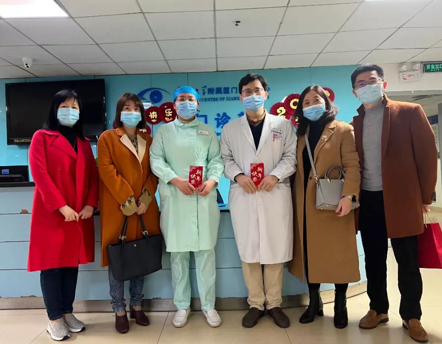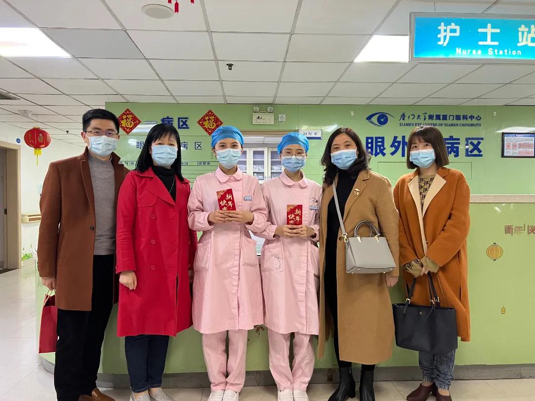 春暖大地百花艷,福滿人間萬象新。在舉家團(tuán)圓的時刻,仍有人堅(jiān)守在工作崗位。除夕當(dāng)天,廈門眼科中心執(zhí)行總經(jīng)理姚鄭玲玲、副總經(jīng)理賴瑋玲、工會主席張美嫦、人力資源部總監(jiān)石磊等院領(lǐng)導(dǎo)班子成員深入病區(qū),看望并慰問春節(jié)期間堅(jiān)守一線的醫(yī)務(wù)人員、值班后勤人員,為他們送上真切的關(guān)懷與新春的祝福。感謝他們節(jié)日期間恪守盡職,就他們在過去一年中的辛勤付出表示肯定,對疫情防控緊要關(guān)頭做出的積極貢獻(xiàn)致以崇高的敬意。