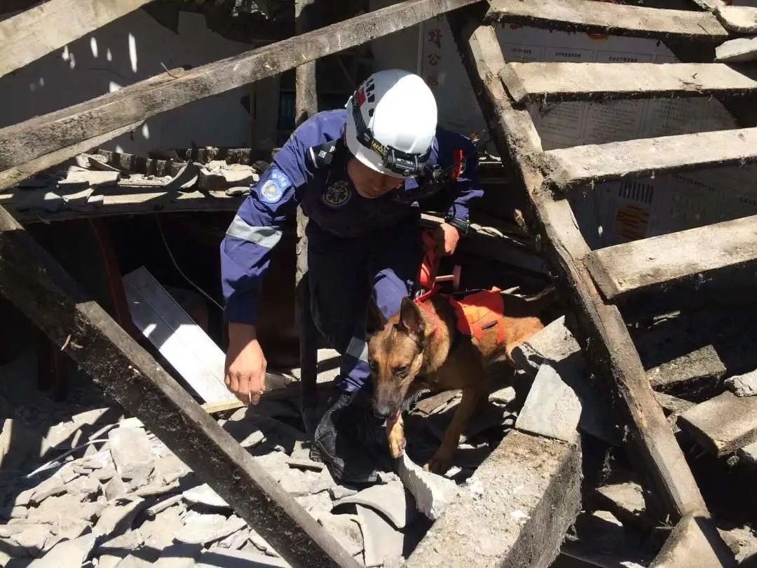2017年8月8日21時19分,四川省阿壩州九寨溝縣發(fā)生7.0級地震。王友鵬與隊友帶著搜救犬“巴迪”,深入處處充滿險情的地震正中心,積極協(xié)助搜尋失蹤被埋人員,爭分奪秒探向落石下的廢墟。