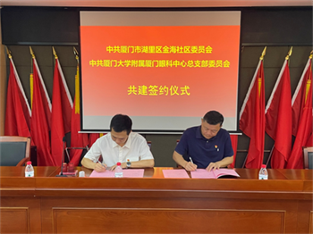 為認(rèn)真貫徹落實(shí)習(xí)近平總書記關(guān)于城市基層黨建的重要指示批示精神,踐行黨的二十大關(guān)于健康事業(yè)和基層保障工作的相關(guān)精神,扎實(shí)推進(jìn)社企聯(lián)動(dòng),發(fā)揮“黨建聯(lián)盟”在基層服務(wù)中的引領(lǐng)作用,7月26日上午,廈門大學(xué)附屬?gòu)B門眼科中心黨總支攜手湖里區(qū)金海社區(qū)黨委共同舉行《城市基層黨建結(jié)對(duì)共建協(xié)議書》簽訂儀式。金山街道金海社區(qū)黨委書記林龍偉、廈門眼科中心黨總支書記劉旭陽(yáng)、華廈