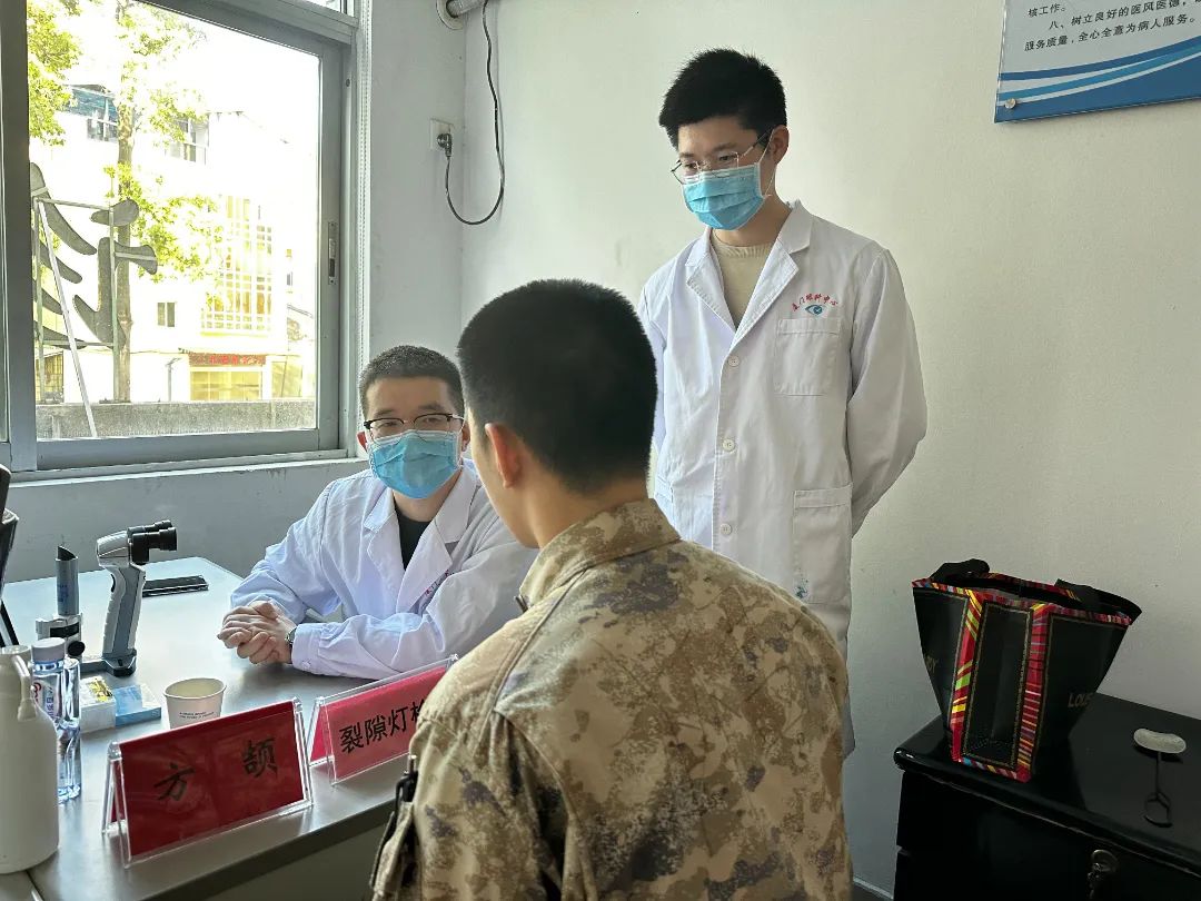 現(xiàn)場(chǎng),眼表與角膜病中心的專家團(tuán)隊(duì)為官兵們提供視力、裂隙燈及相關(guān)眼表檢查,前來(lái)問(wèn)診的小林自述,自己常常覺(jué)得眼睛很癢,“感覺(jué)眼睛里面有東西,總想用手去揉眼睛。”詳細(xì)問(wèn)診并結(jié)合現(xiàn)場(chǎng)檢查后,眼表與角膜病中心的方頡醫(yī)生發(fā)現(xiàn)小林是由于過(guò)敏史導(dǎo)致的結(jié)膜炎,當(dāng)即告知其適合治療的藥物,以及平常如何避免發(fā)病的防范小技巧。