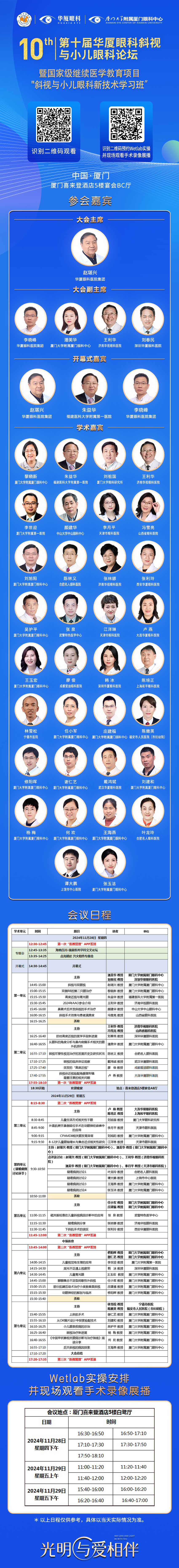 本屆會議主席由國內(nèi)斜視與小兒眼科界領軍人、華廈眼科醫(yī)院集團專家委員會主席趙堪興教授及廈門大學附屬廈門眼科中心業(yè)務副院長潘美華教授、李曉峰教授、王利華教授、劉春民教授共同擔任,會議榮幸地邀請到眾多國內(nèi)著名專家強勢助陣。