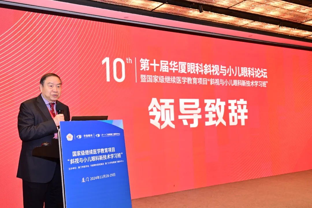 國際眼科科學(xué)院院士、廈門眼科中心總院長黎曉新,國際眼科科學(xué)院院士、華廈眼科醫(yī)院集團(tuán)專家委員會主席趙堪興,國際眼科科學(xué)院院士、廈門眼科中心名譽(yù)院長劉祖國,廈門市衛(wèi)生健康委員會黨組成員、副主任許龍,福建省醫(yī)學(xué)會眼科學(xué)分會主任委員朱益華,華廈眼科醫(yī)院集團(tuán)黨委書記、副總裁李曉峰,中華醫(yī)學(xué)會眼科學(xué)分會斜視與小兒眼科學(xué)組副組長王利華,中山大學(xué)中山眼科中心顏建華,天津市眼科醫(yī)院李月平,山西省眼科醫(yī)院馮雪亮,武警特色醫(yī)學(xué)中心張泉等領(lǐng)導(dǎo)專家參與論壇。廈門眼科中心業(yè)務(wù)副院長、斜視與小兒眼科學(xué)科帶頭人潘美華主持開幕式。