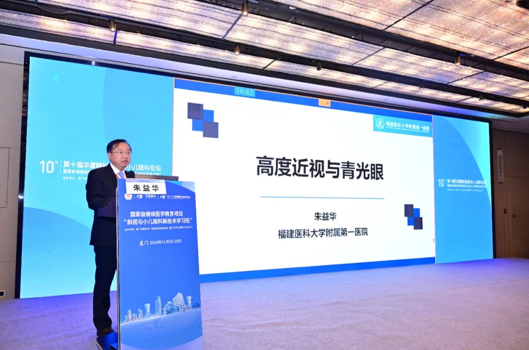 ▲ 福建省醫(yī)學(xué)會眼科學(xué)分會主任委員朱益華教授致辭