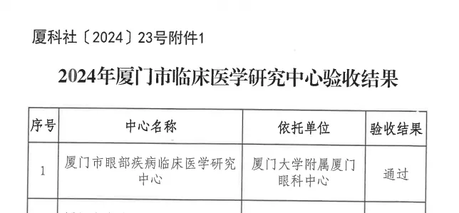 日前,廈門市科學(xué)技術(shù)局對(duì)廈門市5家疾病臨床醫(yī)學(xué)研究中心開展了驗(yàn)收,經(jīng)過層層嚴(yán)格評(píng)選、現(xiàn)場答辯和實(shí)地考察后,我院建設(shè)的眼部疾病臨床醫(yī)學(xué)研究中心成功通過驗(yàn)收!