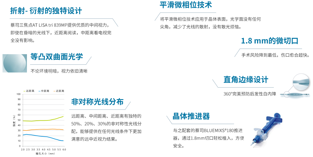 提供三個(gè)焦點(diǎn),覆蓋了距離范圍,將白內(nèi)障、老花眼術(shù)后遠(yuǎn)、中、近全程優(yōu)視力變?yōu)楝F(xiàn)實(shí)。