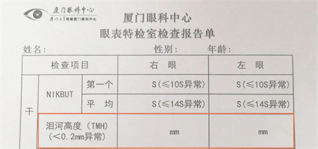 干眼患者一般存在淚河變窄、斷裂甚至消失的情況,淚河高度如果過低,有可能存在干眼癥。當(dāng)淚河高度小于0.2mm時(shí),就屬于異常情況。