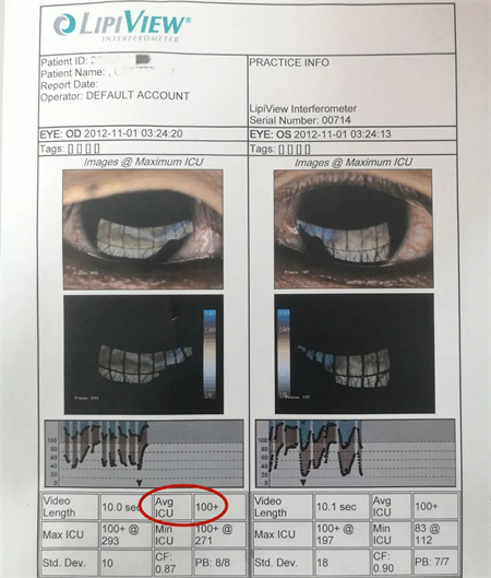 脂質(zhì)層厚度越薄,瞼板腺功能障礙的可能性越大,如果脂質(zhì)層厚度≤60nm,則有90%的概率存在干眼癥。