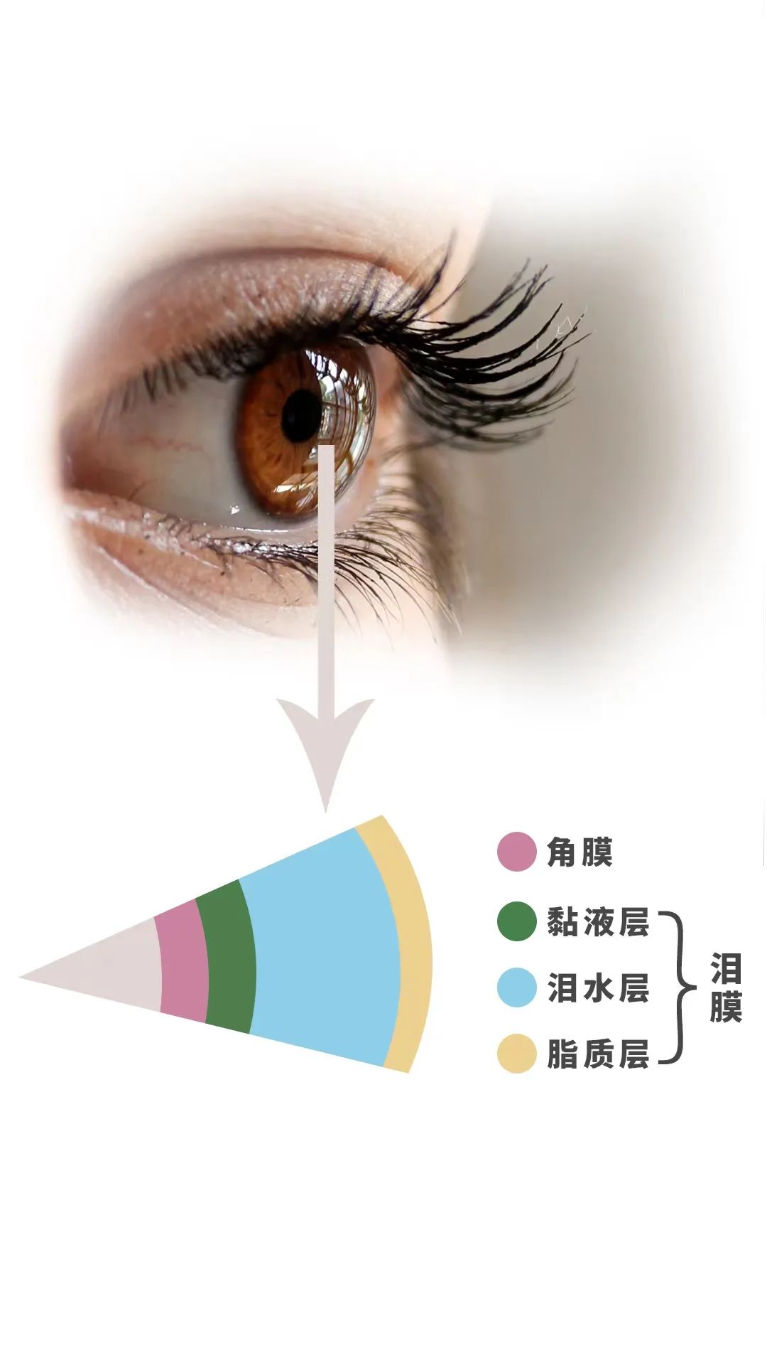 通常我們眼睛的表面覆蓋著一層薄薄的淚膜,這層淚膜包含有“油、水、粘蛋白”三層,會保持我們眼睛的濕潤。
