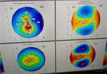 角膜地形圖檢查體現(xiàn)的角膜前后表面曲率、瞳孔中心及位置、角膜頂點和厚度等,可真實反映角膜形態(tài),幫助醫(yī)生快速直觀診斷、排查圓錐角膜。