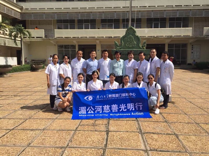 2016年10月21日,科室跟隨柬埔寨光明行先遣醫(yī)療組冒著臺風天轉道啟程前往金邊,為當?shù)?00多名貧困白內(nèi)障患者免費施行手術。用充滿愛與責任的人文情懷澆灌中柬“友誼之花”。